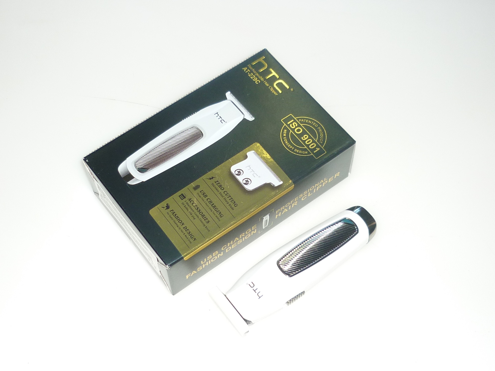 Устройство HTC AT-229C работает от Li-Ion-аккумулятора 1 час, после чего требует 6 часов на зарядку через USB-кабель. На корпусе имеется удобный индикатор заряда. Машинка весит всего 127 г и обладает размерами 4x13.9x3.6 см. Поставка осуществляется с набором насадок, кабелем 1 м, масленкой и щеточкой для чистки.