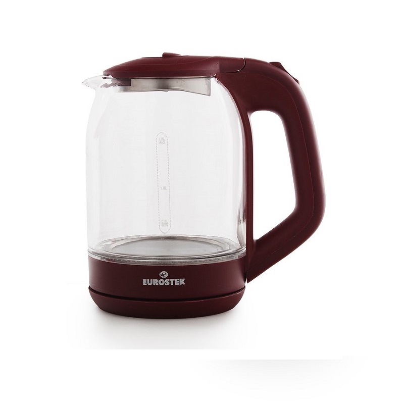 Электрический чайник Eurostek EEK-3014. Объем 1,8л., мощность: 1500 Вт, LED-подсветка, корпус из жаропрочного стекла, диск, кнопка открывания крышки, световая индикация работы, с автоматическое отключение при закипании, автоматическое отключение без воды, вращение на подставке на 360°.