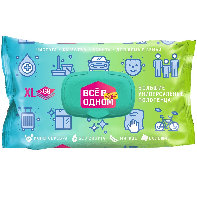 Полотенца влажные для дома и семьи 60 шт с клапаном /10/