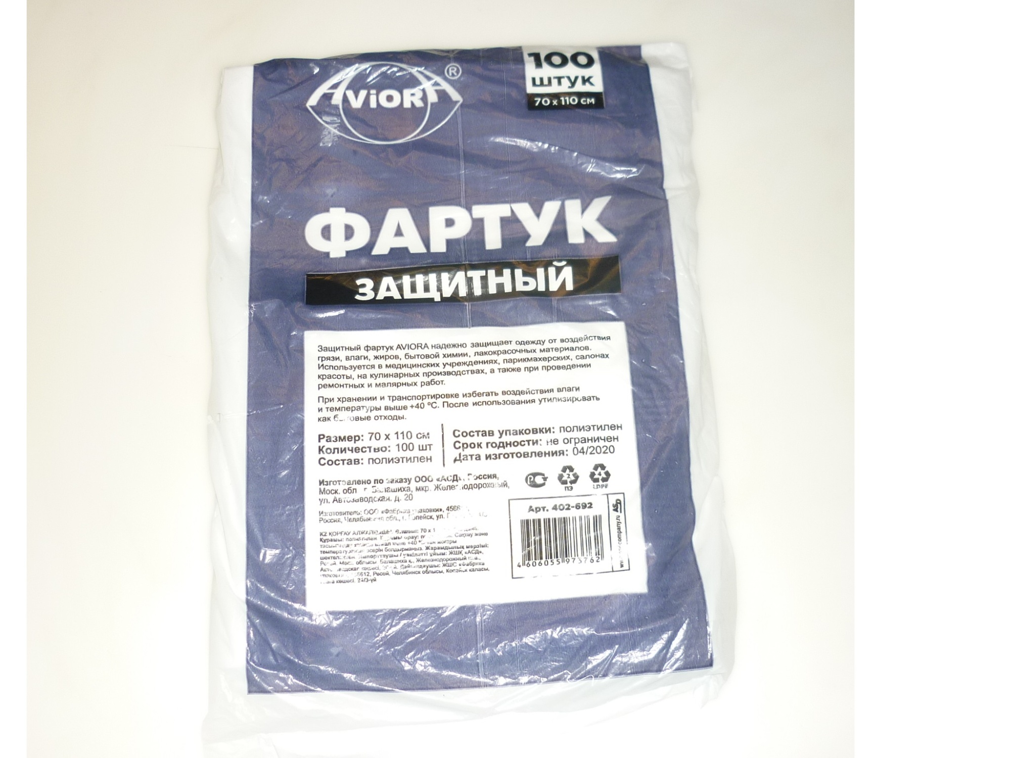 Фартук ПНД 70*100см одноразовый 100шт /10уп   402-692