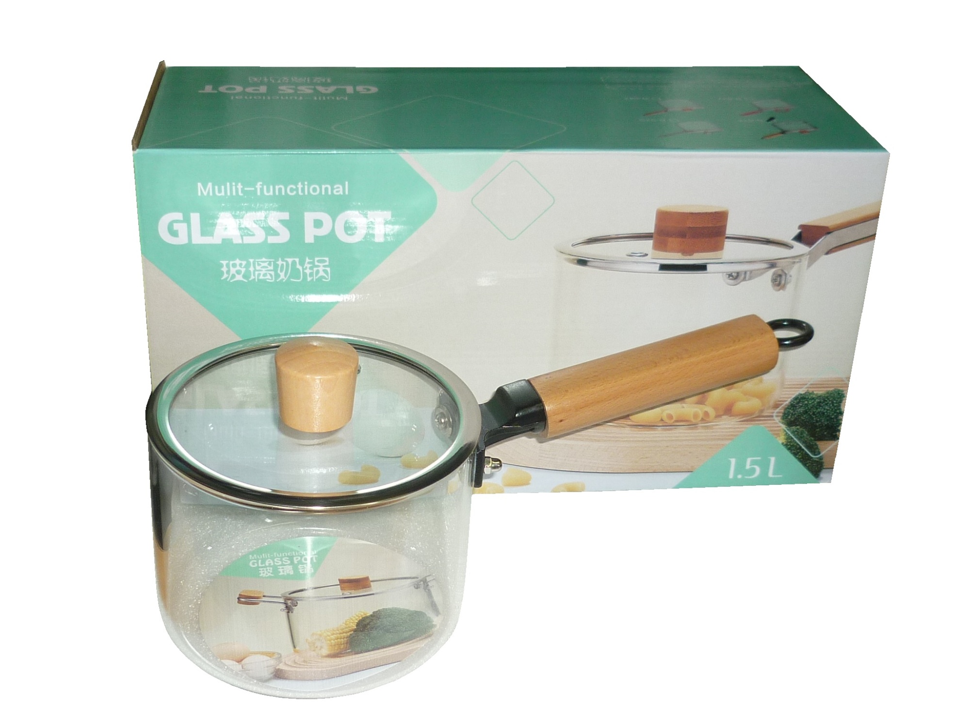 —Ковш стеклянный с крышкой 1,5л бамбук арт01T /12