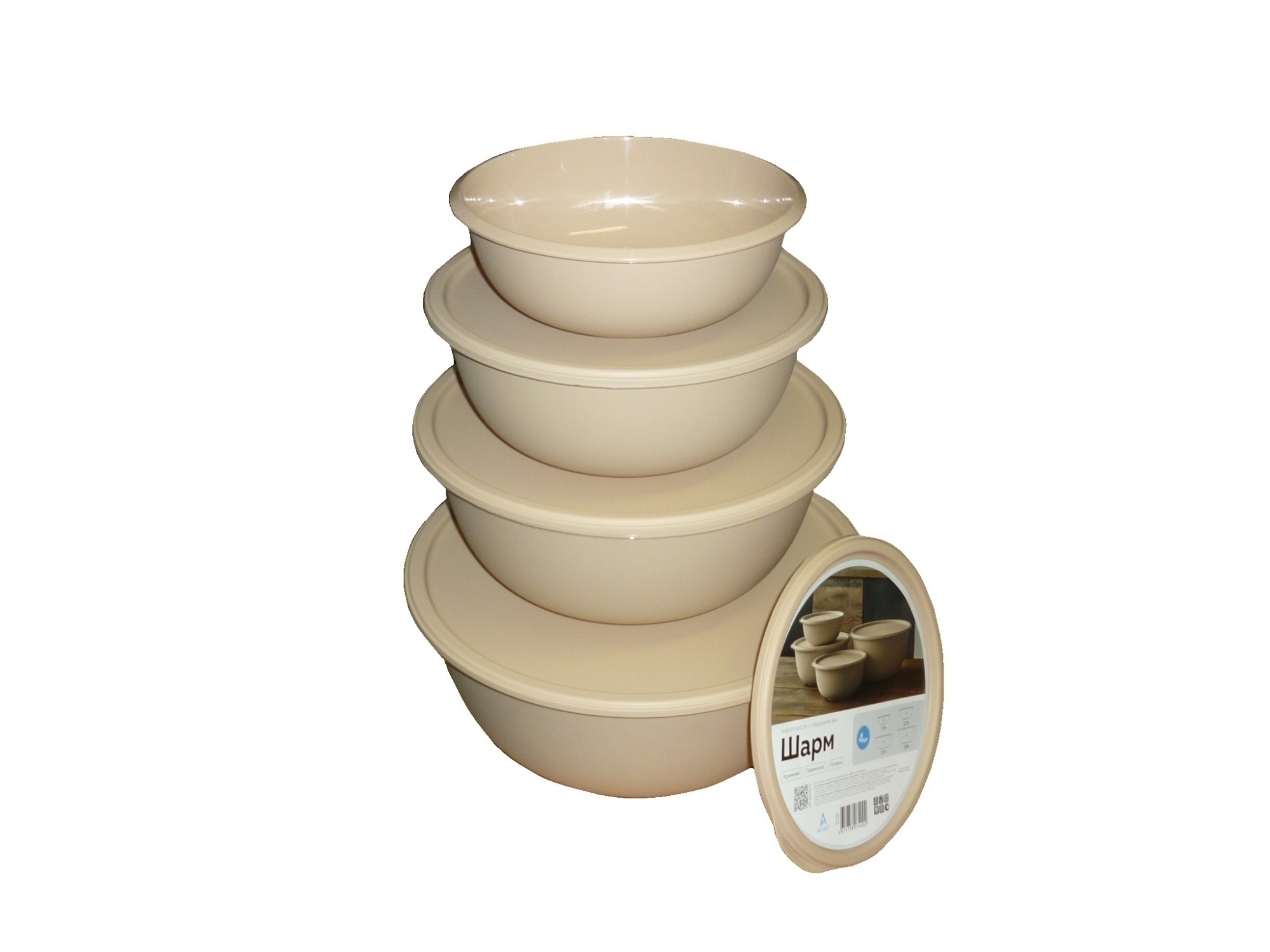 Купить Набор мисок с крышками 4шт ШАРМ №4 (1,3л;2,3л;3,7л;5,6л) АП621 какао /12 оптом по доступной цене в Опт-Трио | Интернет-магазин товаров для дома и сада