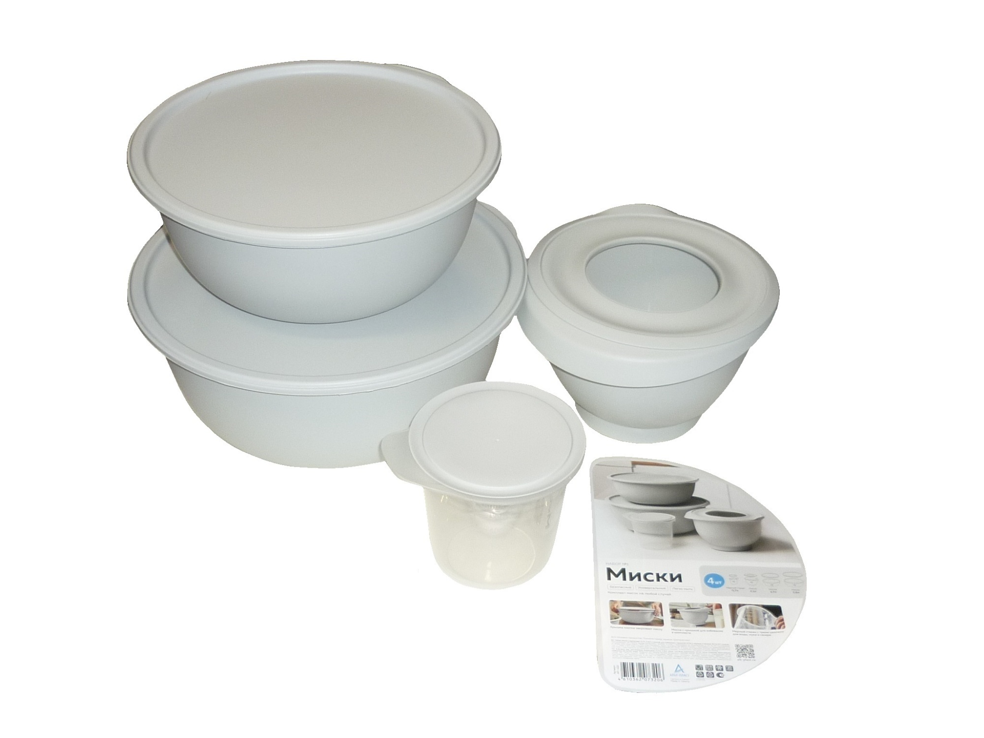 Купить Набор мисок для взбивания Кулинар №1 АП1220 с крышкой и мерным стаканом (5,6л, 3,7л,2,1л,0,7л) серый /12 оптом по доступной цене в Опт-Трио | Интернет-магазин товаров для дома и сада