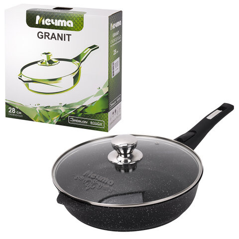 Купить Сковорода 28 см black с ручкой с стекл. крыш. АП Гранит (Мечта)с28802 оптом по доступной цене в Опт-Трио | Интернет-магазин товаров для дома и сада