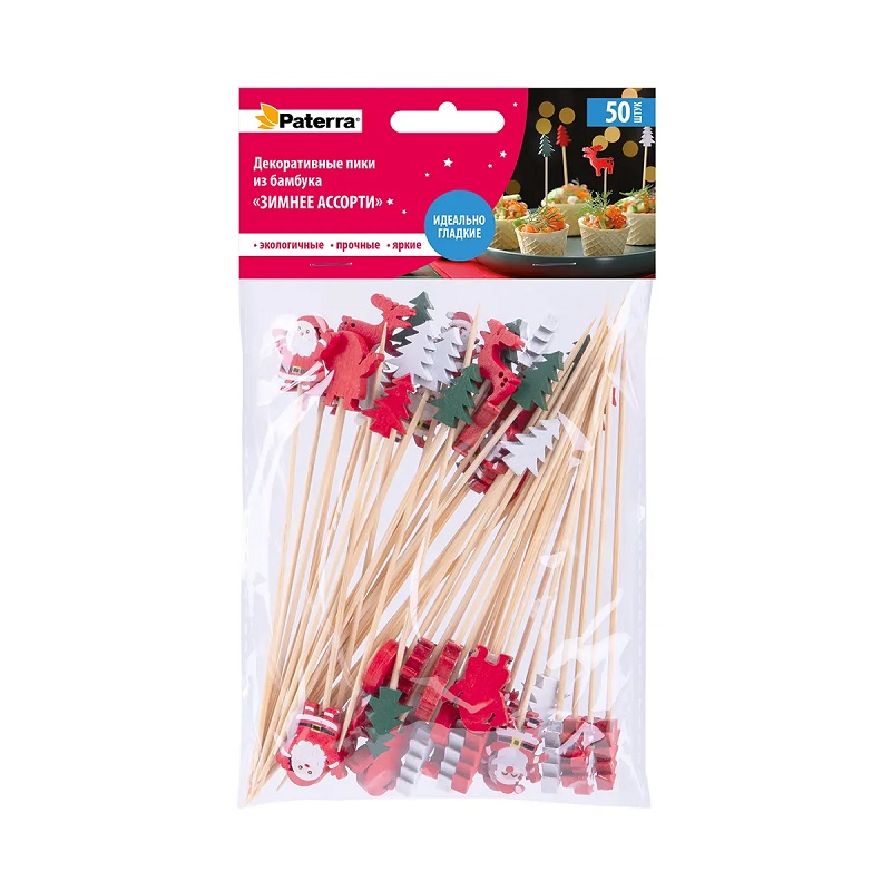 Купить Пики декоративные из бамбука Зимнее ассорти 120мм 50шт /25 491-067 оптом по доступной цене в Опт-Трио | Интернет-магазин товаров для дома и сада