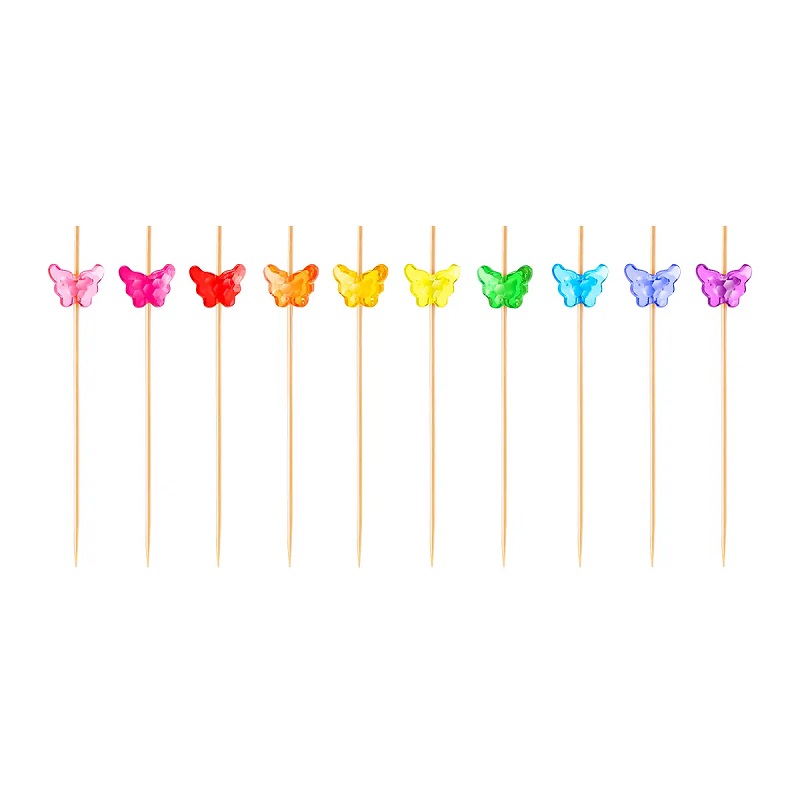 —Пики декоративные из бамбука Бабочки разноцветные 90мм 50шт /25 491-046