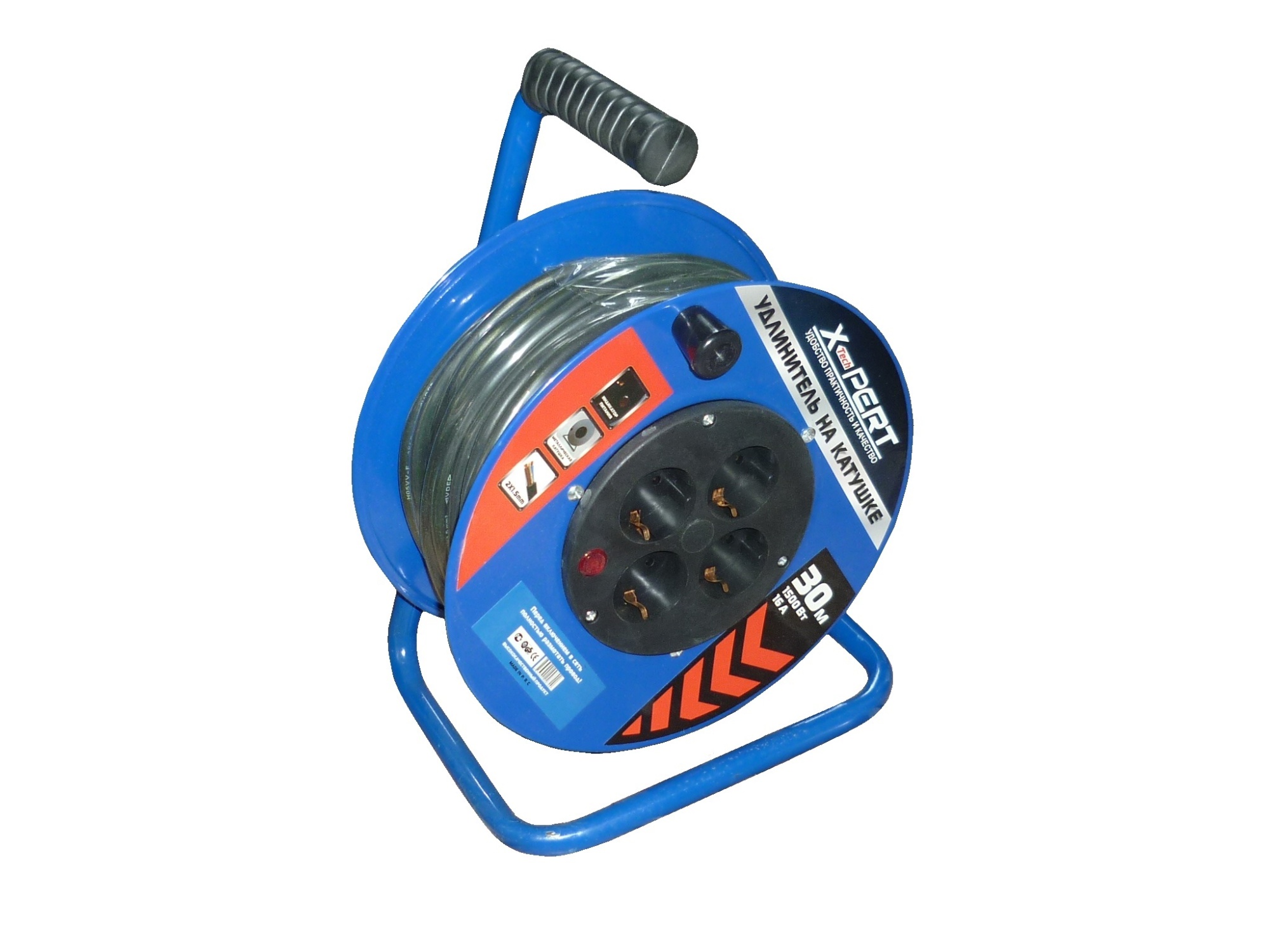 —Удлинитель силовой на железной катушке 30м 1500ВТ 16А ХР-21530 /2/4