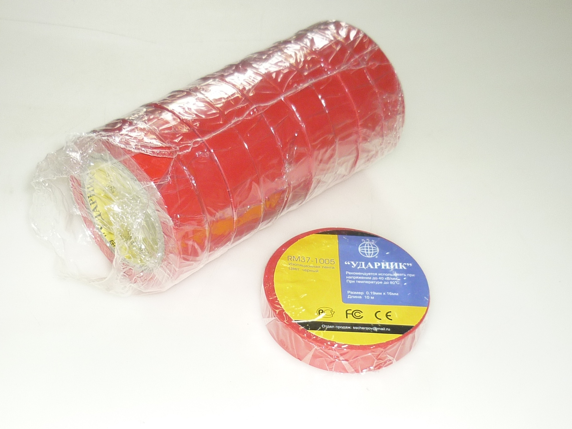 Изолента ПВХ 0,19*16*10м красная /10/200 шт