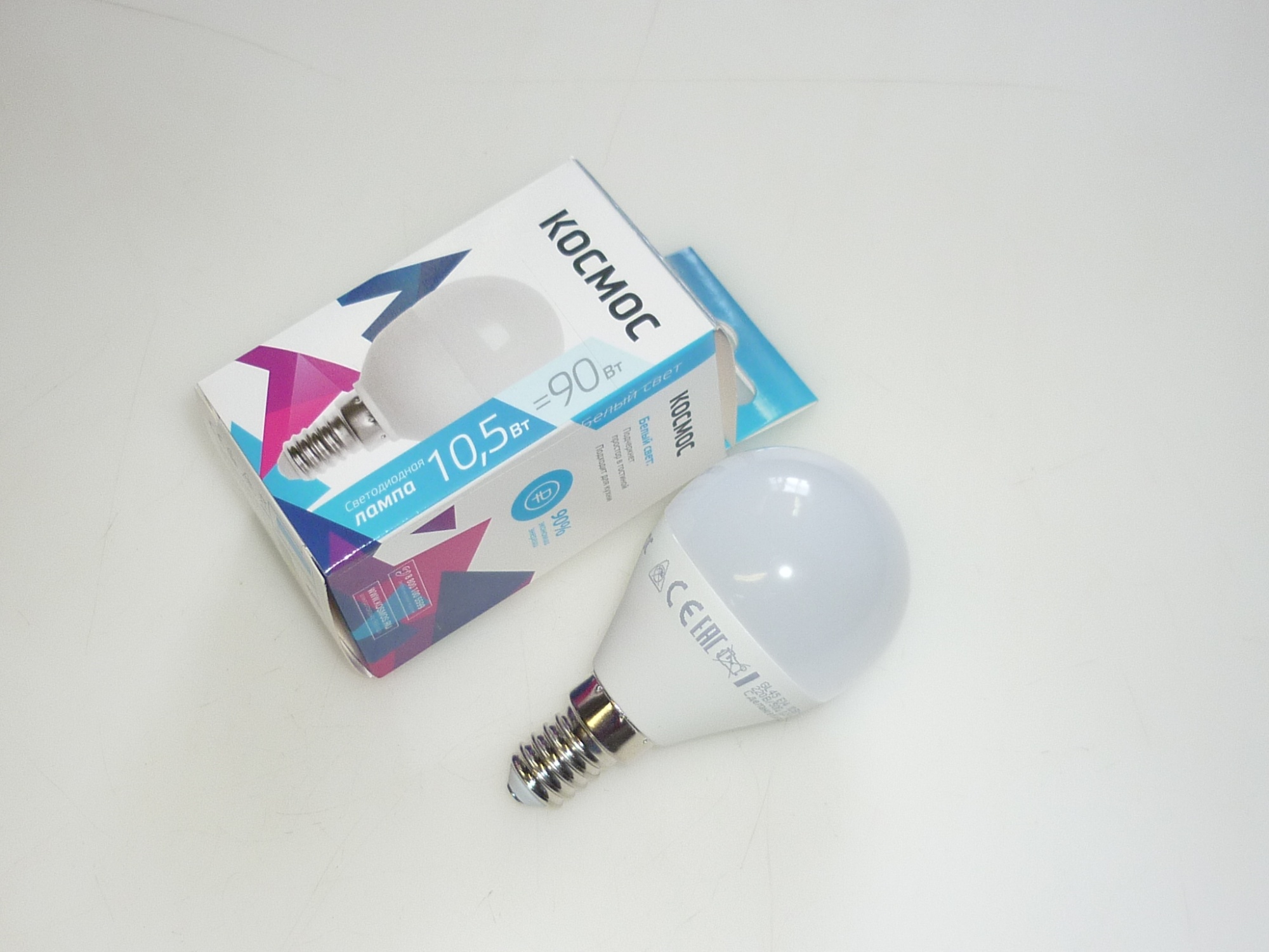 —Эл.лампа Космос GL45 10.5Вт 220В Е14 4500К LED шар /80