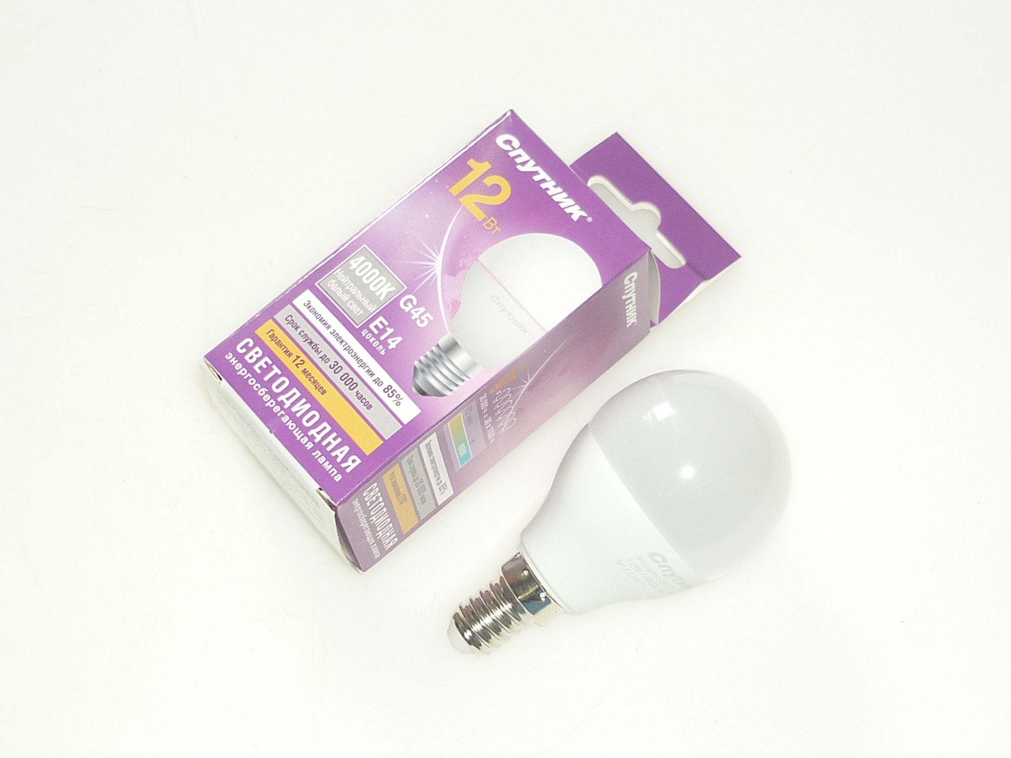 Эл.лампа Спутник G45 12Вт Е14 4000К LED /100