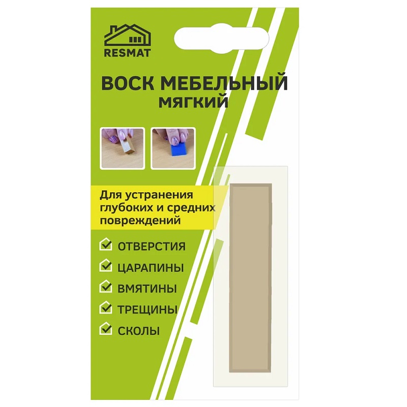 Воск мебельный мягкий от царапин, трещин, вмятин для реставрации мебели, дверей, окон (Орех канада). Воск мебельный мягкий предназначен для заделки глубоких и средних повреждений на деревянных, ламинированных и пластиковых поверхностях, не подверженных интенсивной эксплуатации. Для обеспечения влагостойкости и защиты поврежденного участка, рекомендуется поверх воска нанести несколько слоев фиксирующего лака: один за другим, давая высохнуть предыдущему 5 минут.