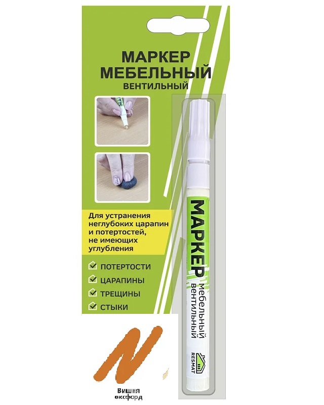 Маркер мебельный для ремонта изделий из дерева, пластика, металла. Маркер предназначен для устранения неглубоких царапин и потертостей, на деревянных, ламинированных, пластиковых и металлических поверхностях. Виды поверхностей: ЛДСП, МДФ, пластик, ламинат, паркет, двери, плинтуса, столешницы, окна, подоконники, корпусная мебель. Виды повреждений: Царапины, трещины, стыки, потертости.