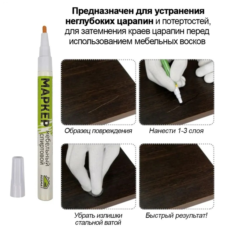Маркер предназначен для закраски царапин и потертостей на мебели.