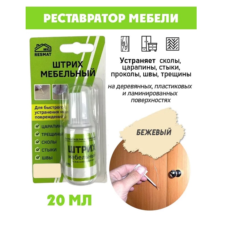 Предназначен для мелкого ремонта мебели, реставрации повреждений, для заполнения повреждений на деревянных и пластиковых поверхностях. Устраняет сколы, царапины, стыки, проколы, швы, трещины. Подходит для ремонта мебельных фасадов, дверей, плинтусов, столешниц, полов, лестниц, подоконников и т.п. из МДФ, ЛДСП, фанеры, массива дерева, ламината, пластика, пробкового покрытия. Наносить кисточкой, при необходимости в несколько слоев. Штрих текуч, легок в использовании, сохнет 15-20 минут, цвета легко колеруются. Образует влагостойкое покрытие, сверху можно покрыть лаком.