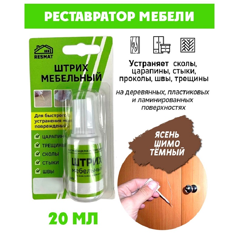 Предназначен для мелкого ремонта мебели, реставрации повреждений, для заполнения повреждений на деревянных и пластиковых поверхностях. Устраняет сколы, царапины, стыки, проколы, швы, трещины. Подходит для ремонта мебельных фасадов, дверей, плинтусов, столешниц, полов, лестниц, подоконников и т.п. из МДФ, ЛДСП, фанеры, массива дерева, ламината, пластика, пробкового покрытия. Наносить кисточкой, при необходимости в несколько слоев. Штрих текуч, легок в использовании, сохнет 15-20 минут, цвета легко колеруются. Образует влагостойкое покрытие, сверху можно покрыть лаком.