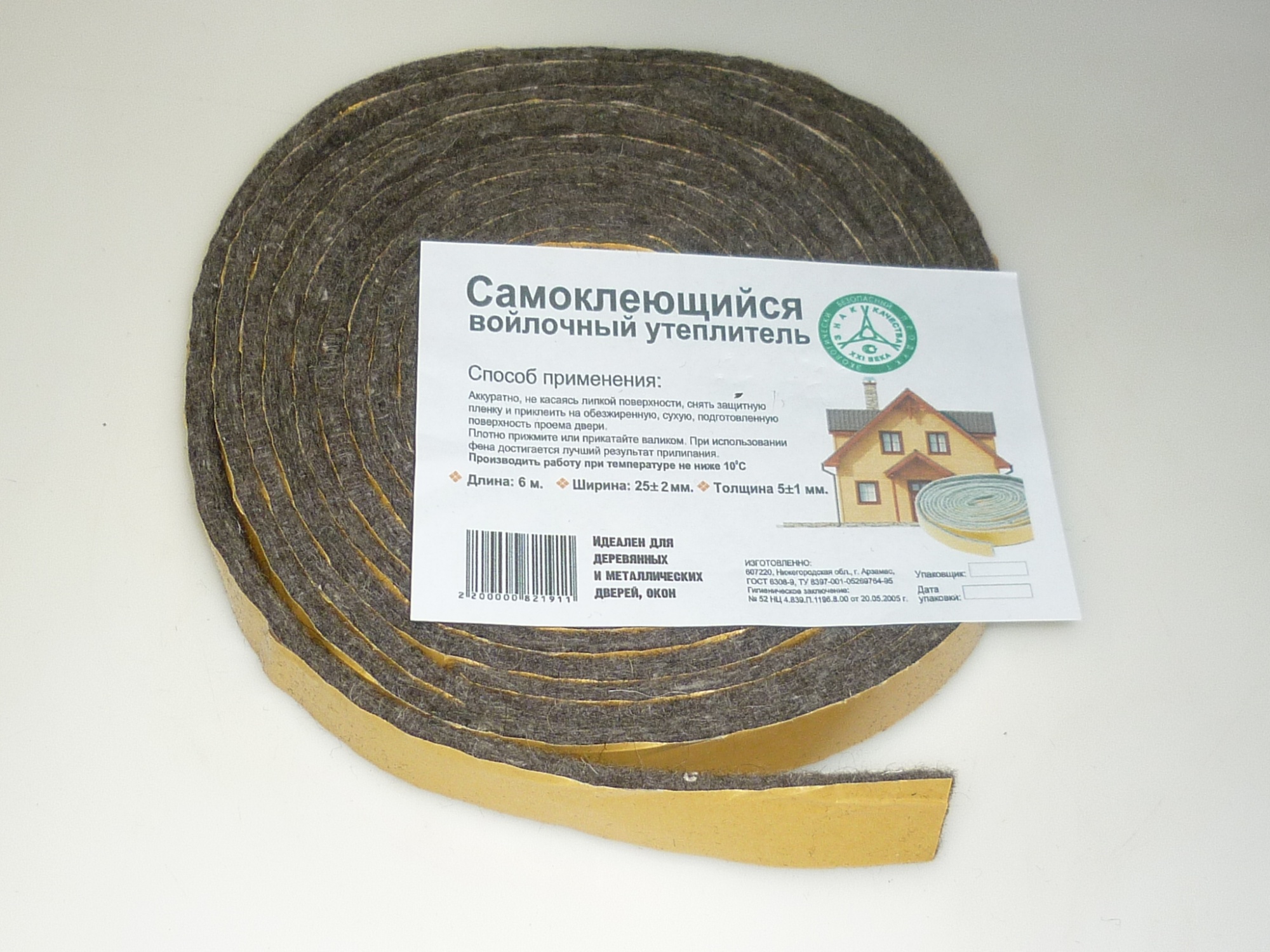 —Утеплитель войлочный 6м*25мм*6мм САМОКЛЕЮЩИЙСЯ /48
