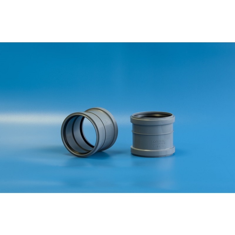 Муфта двухраструбная ПП 110 для вн. канализации серая ПОЛИТЭК (301120) /90