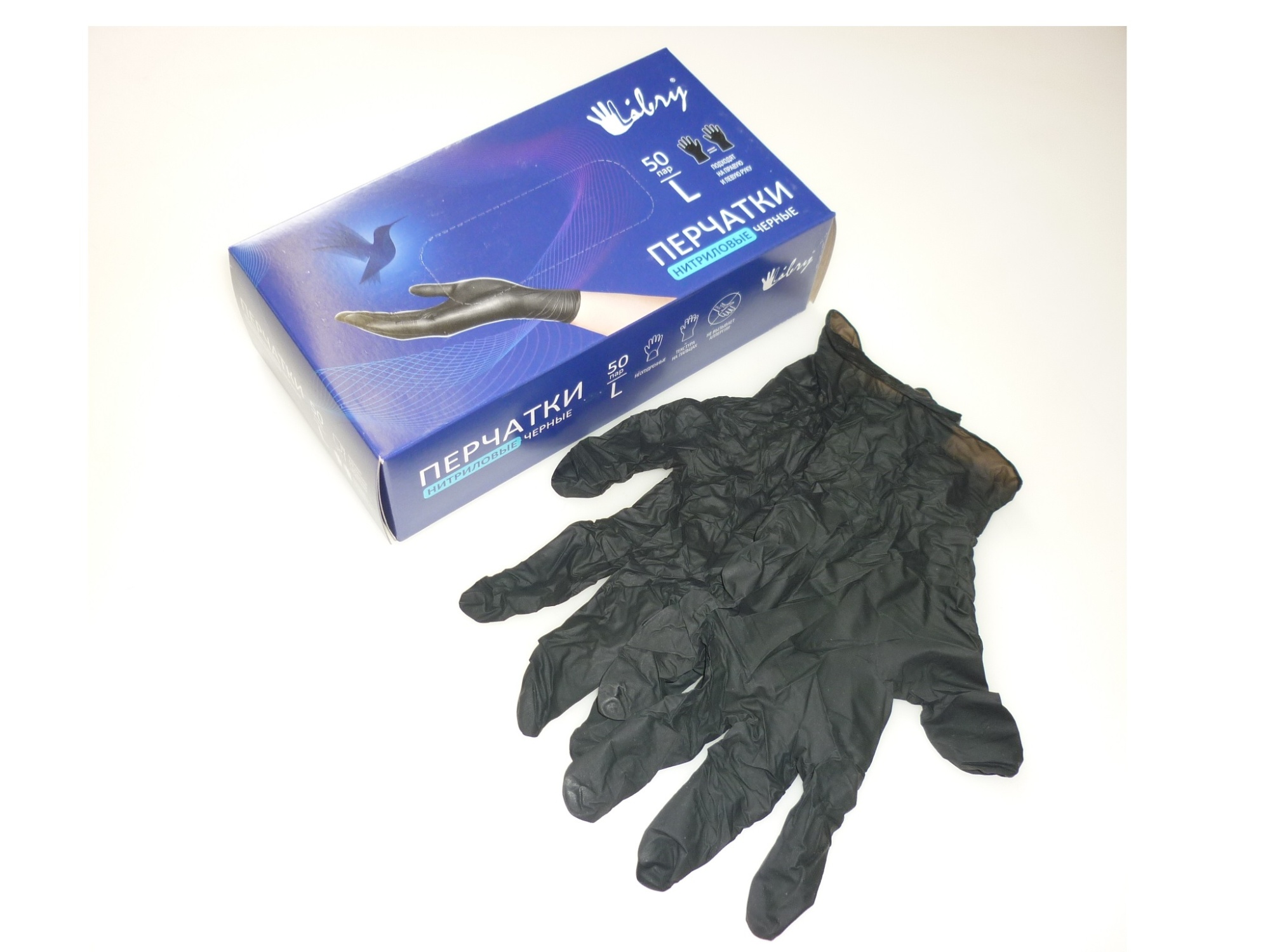 —Перчатки нитриловые ЧЕРНЫЕ р.L н/о 50 пар/10