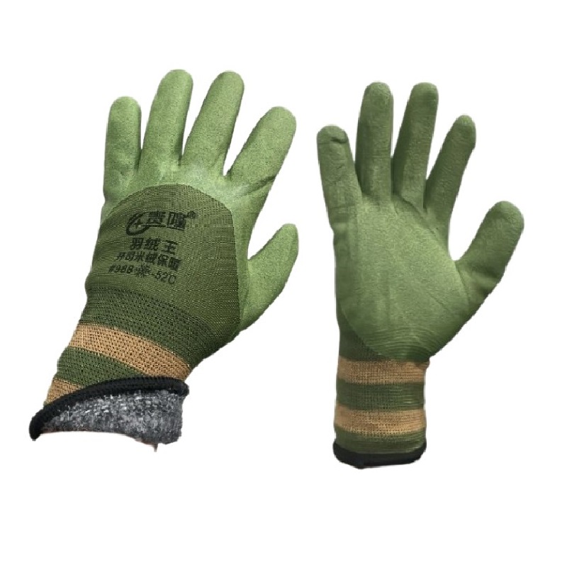 Перчатки акриловые утепленные -52* зелёно-коричневые с зеленым вспененным латексом #988/333 /10/400