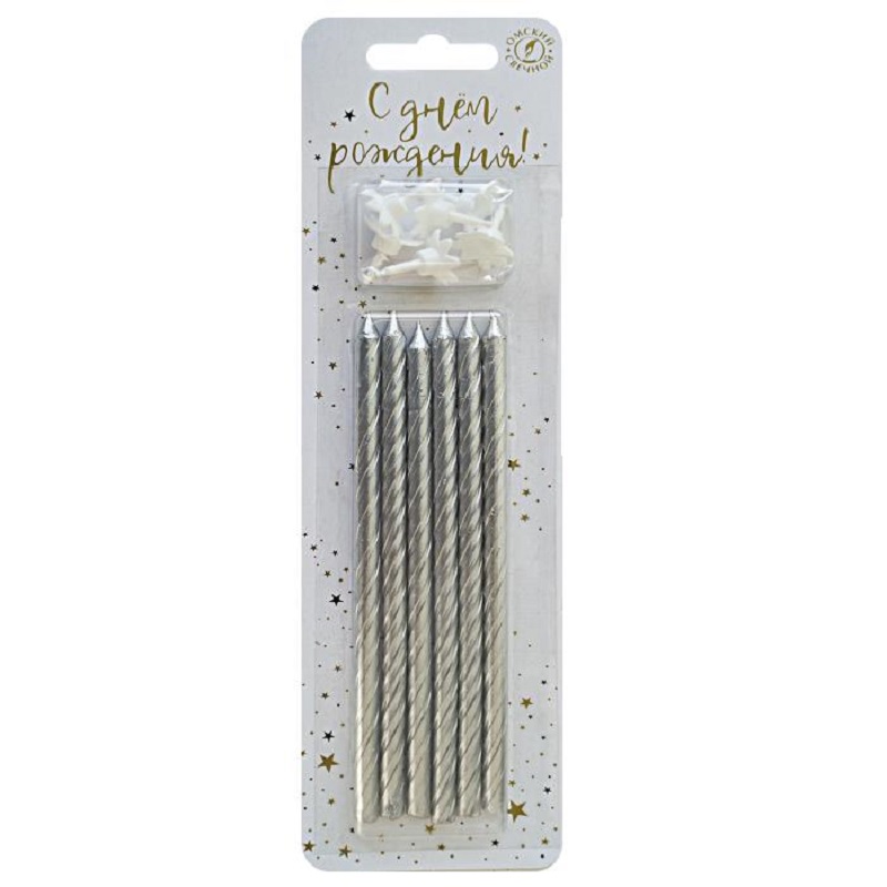 Купить Свечи для торта 6шт 130мм классические серебро ОСЗ арт0934 /40 оптом по доступной цене в Опт-Трио | Интернет-магазин товаров для дома и сада