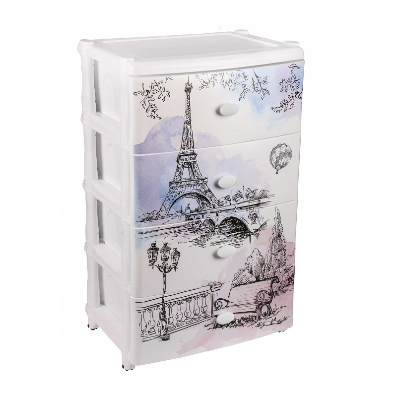 Купить Комод пласт 4 секции "Весна в Париже" широкий /1 оптом по доступной цене в Опт-Трио | Интернет-магазин товаров для дома и сада