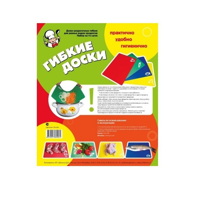 Доски имеют большую рабочую поверхность. Гибкость доски позволяет перекладывать нарезанные на ней продукты в различные емкости