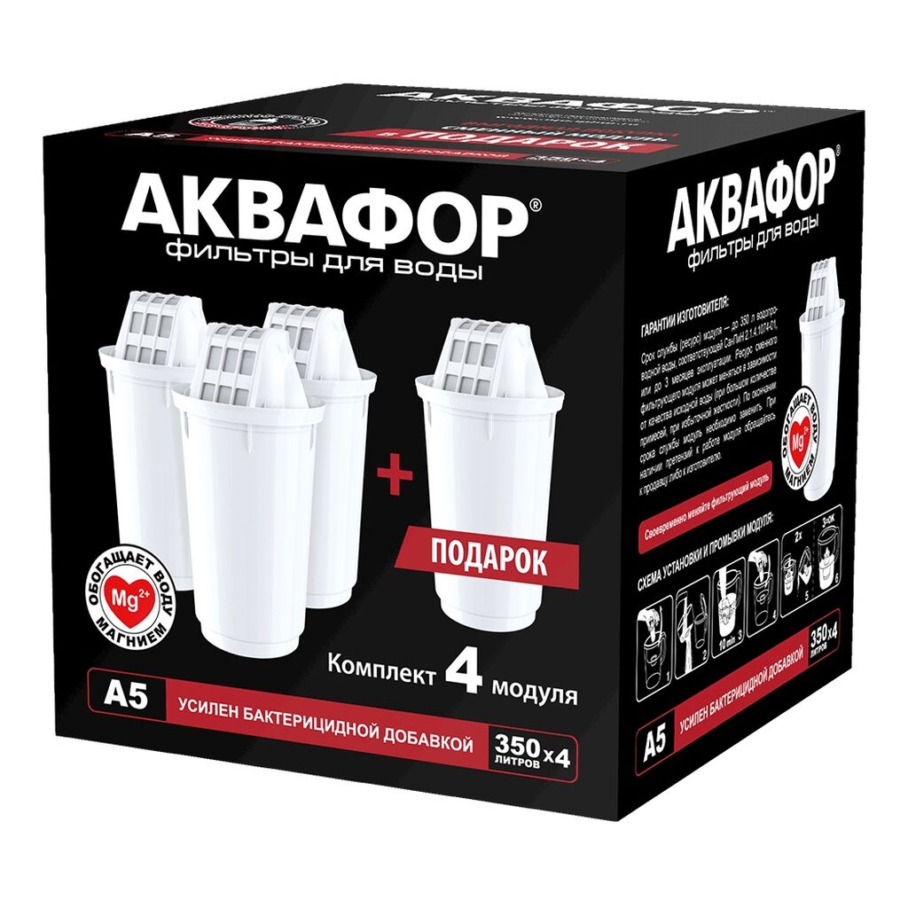 Картридж А5, помимо фильтрующей смеси, содержит минерал - перламутровый доломит, который сохраняет магний в очищенной воде. Это единственный минерал, который легко усваивается из воды. Он предотвращает заболевания сердца и сосудов, положительно влияет на настроение и сон. ВОЗ считает магний самым дефицитным минералом для населения Земли: получить норму магния с обычным рационом питания в городе сложно.