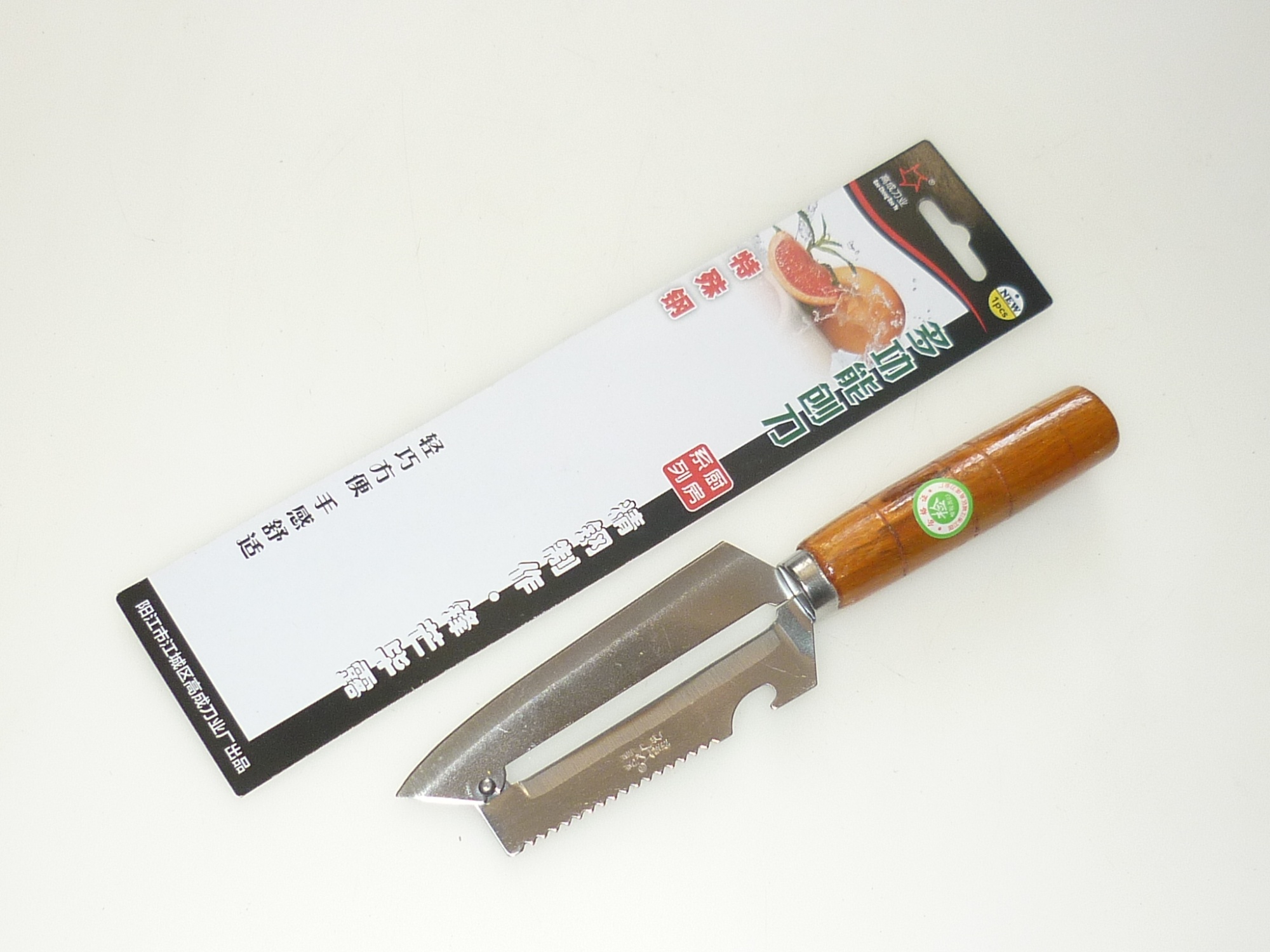 Нож-Шинковка с открывашкой "Помощник 3в1" дер.ручка F10 /300шт   16788-7