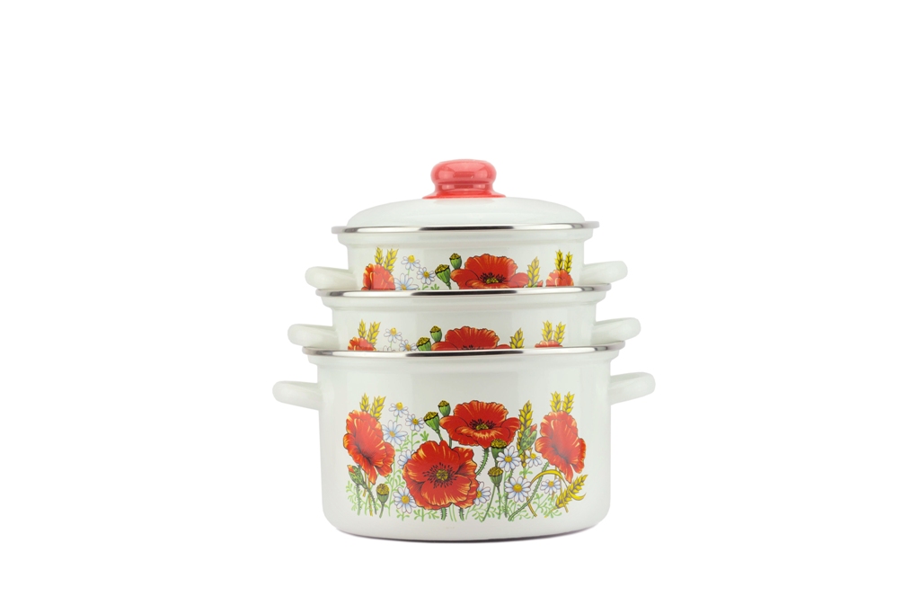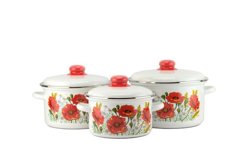 Купить Набор кастрюль 3шт Уралочка (2+3+4л) 2-3088/4 Красные Маки по доступной цене в Опт-Трио | Интернет-магазин товаров для дома и сада