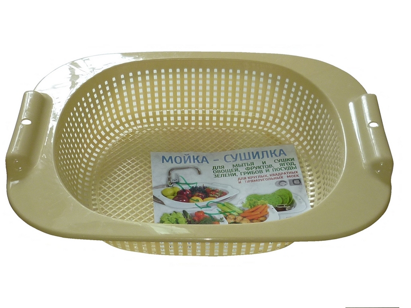 Создана для любых раковин, кроме самых необычных. Для квадратных, круглых, прямоугольных подойдет отлично, просто поставьте сушилку на раковину. С помощью неё вы решите большинство задач на кухне или даче. Легко мыть фрукты, овощи, зелень. С функцией дуршлага справится на ура, просто слейте горячие макароны. Можно мыть в посудомоечной машине.