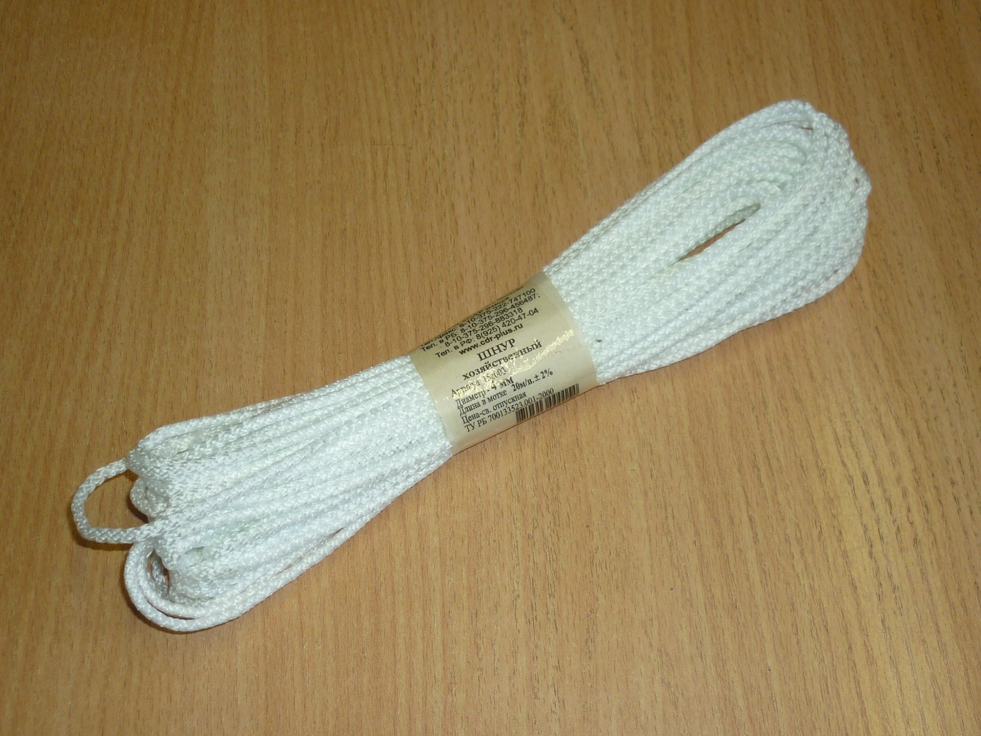 —Шнур хозяйственный вязаный БЕЛЫЙ d-4мм 20м /100/200/230/250