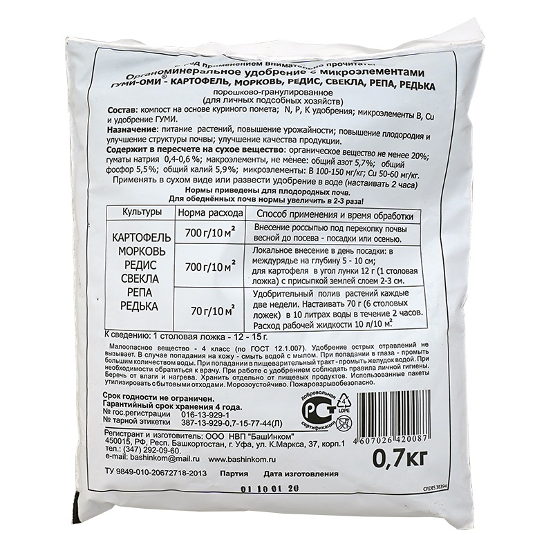 —Удобрение ГумиОми Картофель, Морковь, Редис, Свекла, Репа, Редька 0,7кг /20