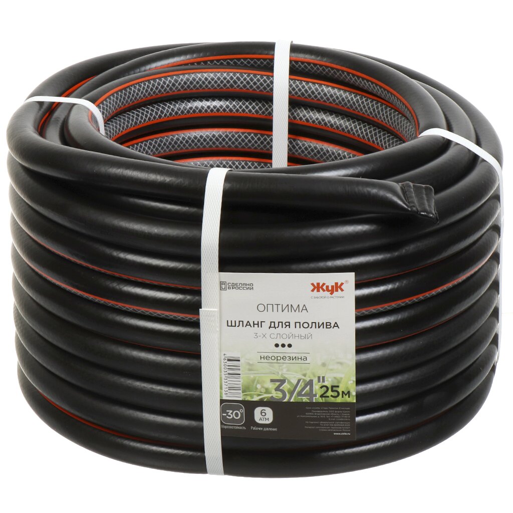 Морозостойкие поливочные шланги Жук серии Оптима — недорогое решение для организации полива на садовом участке. Эти шланги обладают всеми необходимыми характеристиками: высоким рабочим давлением, устойчивостью к скручиванию и перегибам, выдающимися параметрами морозостойкости (-30°C).