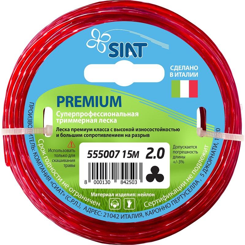 —Леска для триммера SIAT PREMIUM Канат 2,0мм*15м Италия /1