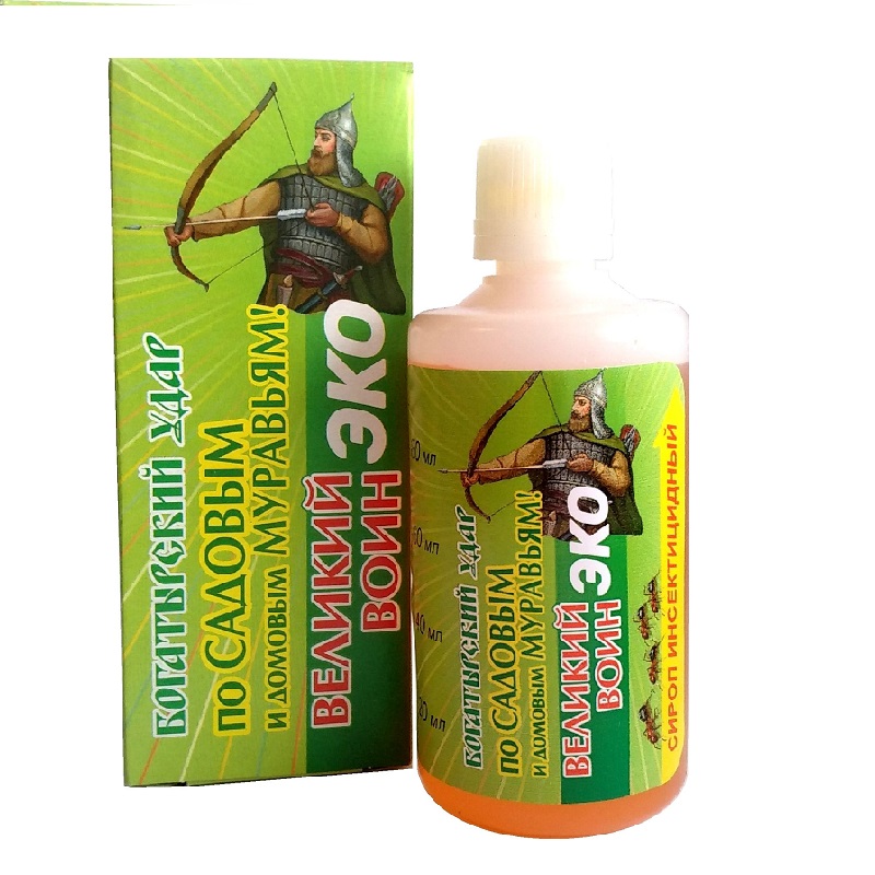 «Инсектицидный сироп «Великий воин» нетоксичен и безопасен для использования. Средство не накапливается в почве и не вызывает её загрязнения, может применяться рядом с овощными и плодовыми растениями.