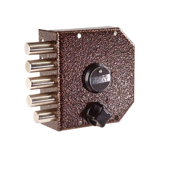 Замок накладной сувальдный с задвижкой. Предназначен для установки на металлические двери. Замок имеет засов из четырех цилиндрических ригелей диаметром 18 мм, с максимальным вылетом 40 мм, и задвижку диаметром 18 мм с вылетом 30 мм. Удаление ключевого отверстия - 64 мм. Количество полуоборотов ключа - 4. Габариты замка - 135х146х32,5 мм. При закрытом на задвижку замке использование ключей с наружной стороны невозможно. Защита от вскрытия замка отмычкой, защита от высверливания стойки ригеля и защита от вскрытия методом проворота.